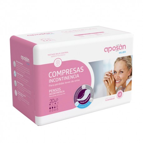 Compresas de incontinencia de Aposán con absorción para pequeñas pérdidas de orina.