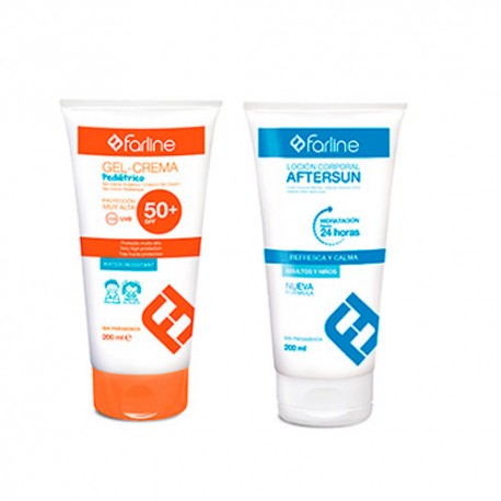 Este pack solar para niños contiene un gel-crema corporal con protección solar muy alta SPF 50+ para proteger la piel de la exposición solar, y una loción corporal aftersun para hidratar y reparar la piel después de la exposición solar.