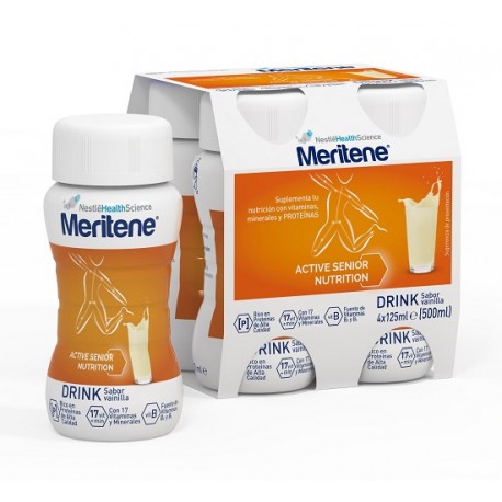 Meritene Drink Vainilla es un batido listo para tomar, rico en Proteínas y 17 Vitaminas y Minerales, que te ayudan a complementar tu alimentación, combatiendo la sensación de fatiga, cansancio y debilidad muscular.
